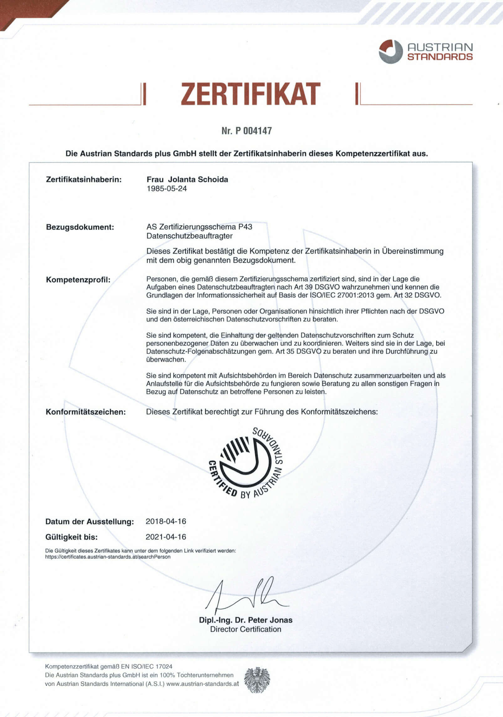 We work according to the highest data protection and security standards. To ensure that your company and your customers' data is protected in the best possible way, we have had our leading employees certified as data protection officers by Austrian Standards.